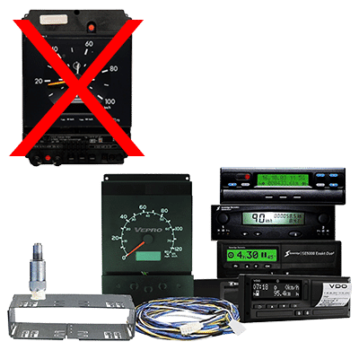 El KIT de sustitución del tacógrafo 1319 consiste en un velocímetro (que reemplaza al 1319) conectado a un tacógrafo analógico o digital instalado por separado en el panel de instrumentos del vehículo en la cabina. Para vehículos Mercedes Actros 24V o Mercedes Sprinter 12V. Contenido del KIT: